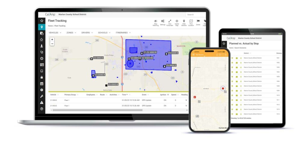 With CalAmp’s K-12 fleet management solution, school officials and drivers have an easier system to report and track attendance. Drivers don’t have to manually keep track of their work hours, they just need to clock in and out on a tablet on the bus and it’ll monitor the rest for them.